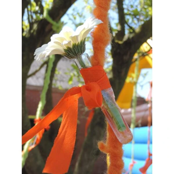 De buisjes in plexiglas zijn zeer gemakkelijk te gebruiken in een bloemstuk als waterreservoir voor snijbloemen.