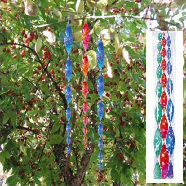 Vogels verjagen uit groenten en fruit met kleurrijke spiralen